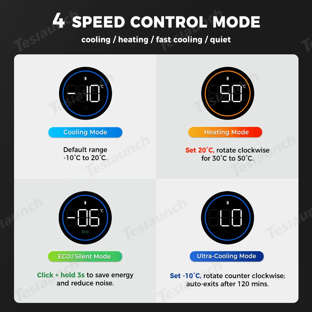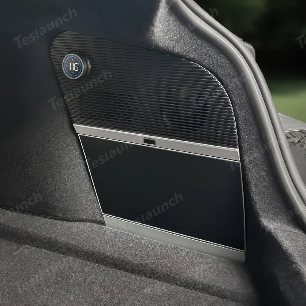 Upgrade your Tesla Model 3 Highland 2024+ with this 10L Car Fridge – Trunk Side Storage, designed to fit perfectly in the rear trunk's side compartment. With dual cooling and heating functions -13°C to 50°C (9°F to 122°F), it keeps drinks chilled or meals warm-ideal for road trips or daily drives. Featuring a sleek stainless steel front, quiet operation, and a smart control system, this compact fridge offers both convenience and style. It also includes a free touch control dock for easy temperature adjustment from the center console.