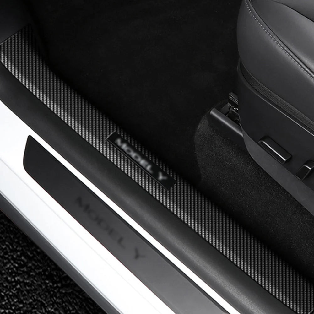 Kolfiberfärgad dörrtröskelskydd + Trunk Sill Protector för Tesla Model Y 2021-2024 är ett premiumtillbehör designat för att förbättra hållbarheten och estetiken hos din Tesla. Uppgradera din Tesla Model Y med dessa kolfiberfärgade dörrtröskelskydd + Trunk Sill Protector för extra skydd och stil.