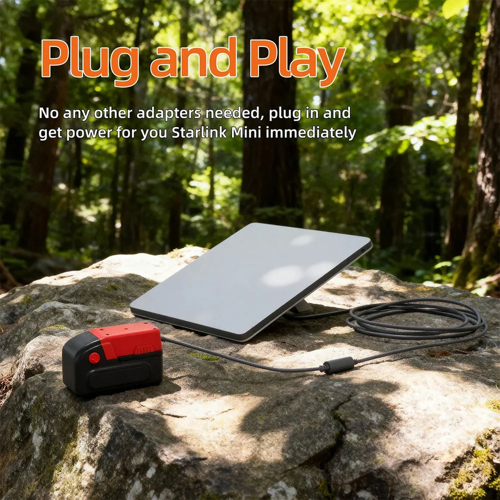 Direct Power for Starlink Mini: Connect your Starlink Mini straight to the Milwaukee Battery Power Adapter using the waterproof DC connector—no extra adapters needed.