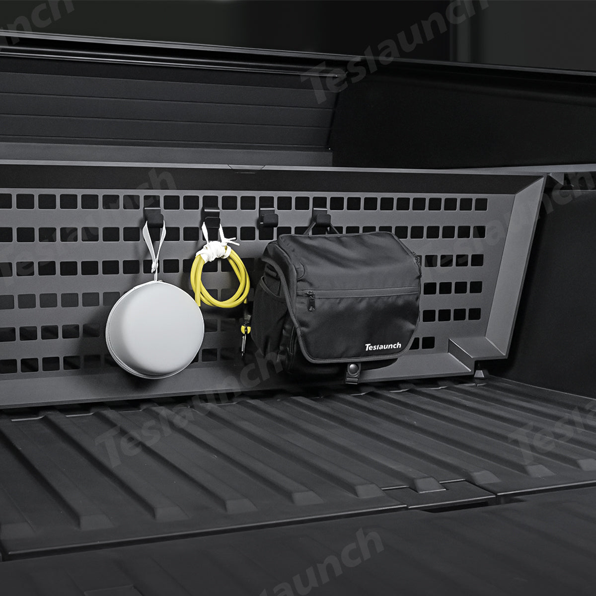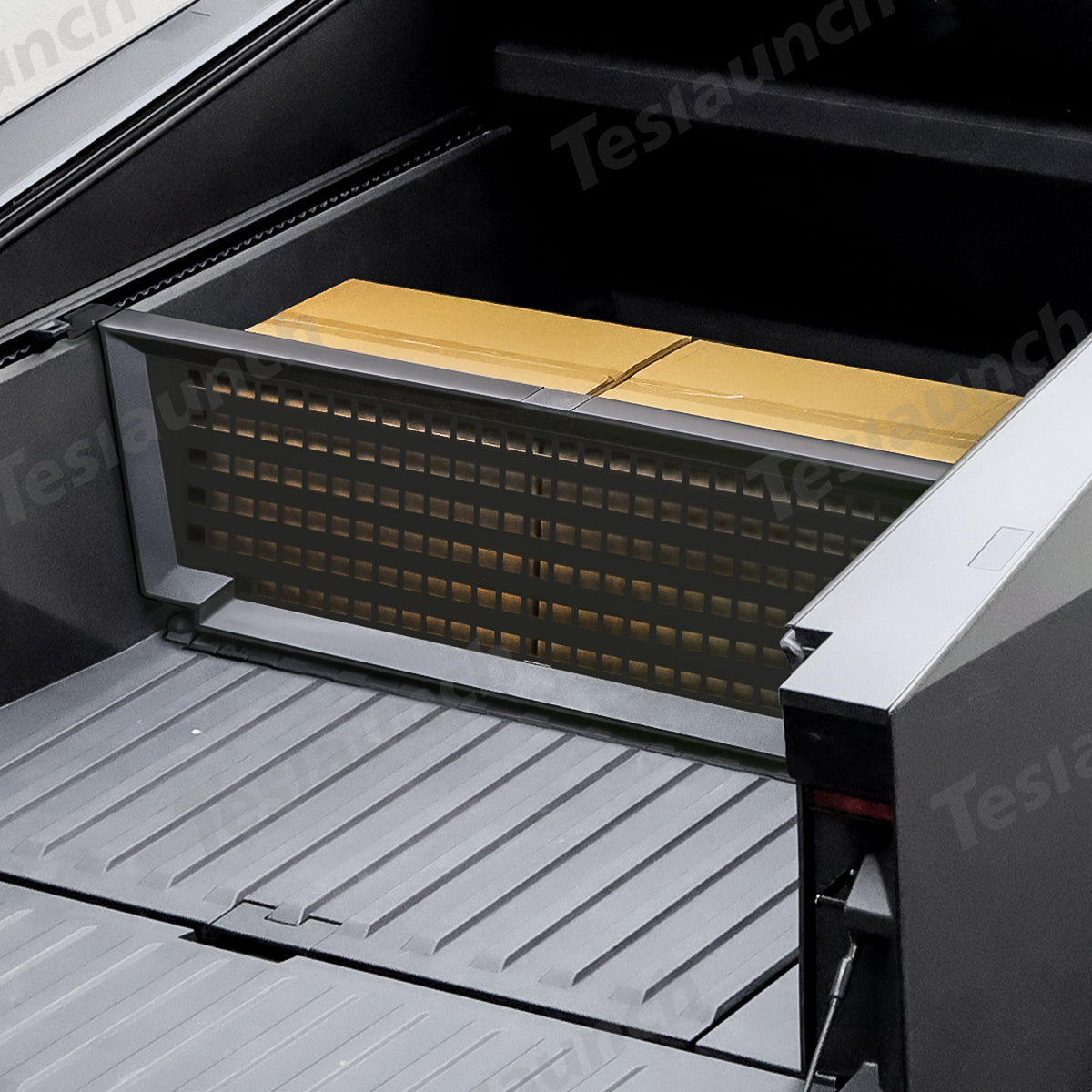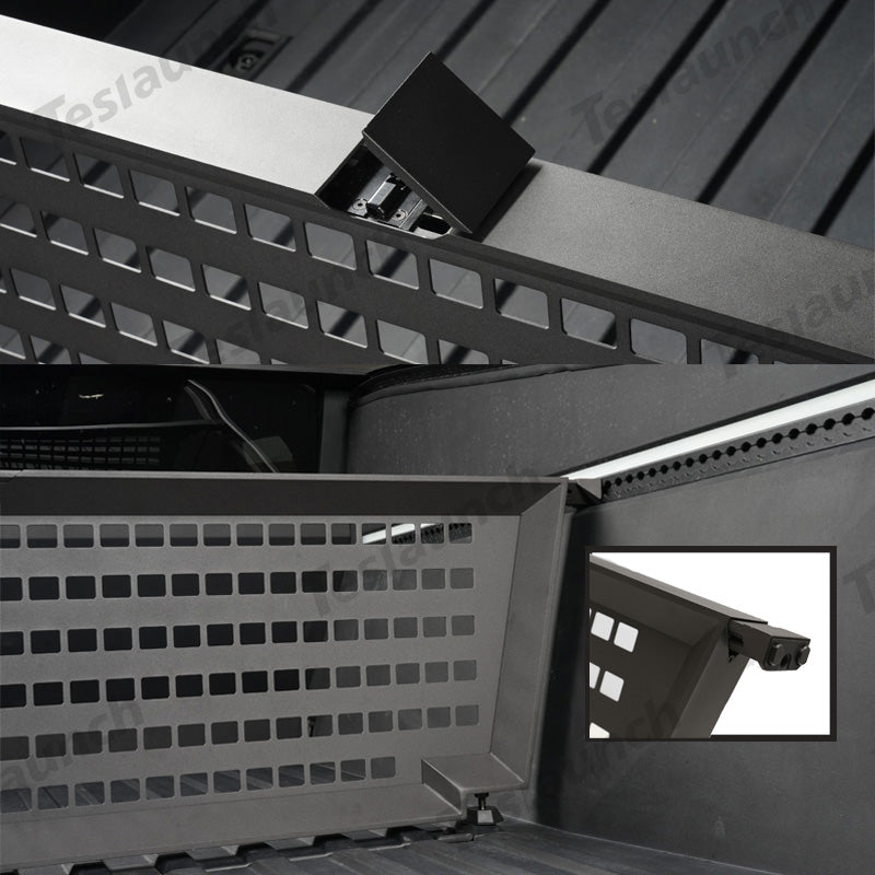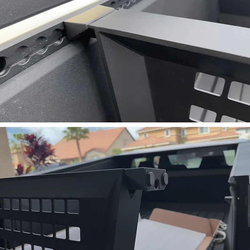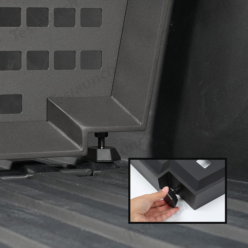 Den bakre Trunk Vault Cargo Divider för Cybertruck är designad för flexibel placering längs med L-bana, vilket gör den mycket anpassningsbar för att organisera din lastbilsflak. Dess längd kan enkelt justeras genom att dra åt sidorna, vilket säkerställer en perfekt passform. Botten har en justerbar gummibas, som förhindrar asymmetri och säkerställer stabilitet, samtidigt som den tillåter kompatibilitet med mattor, så att avdelaren förblir stadig och funktionell även med en sängmatta under.
