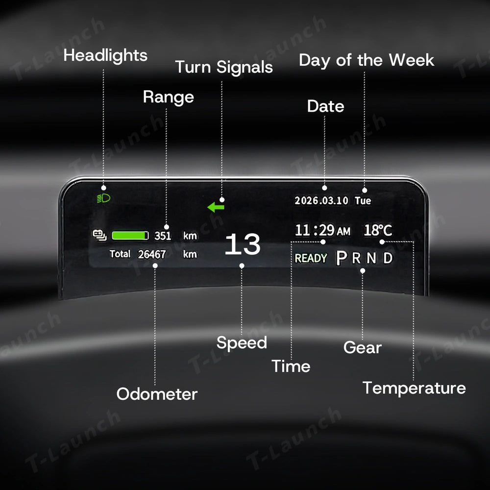• Enhanced Driving Safety: The HUD provides real-time key driving information, allowing drivers to monitor speed, gear position, and turn signals without taking their eyes off the road, reducing distractions and improving overall safety.