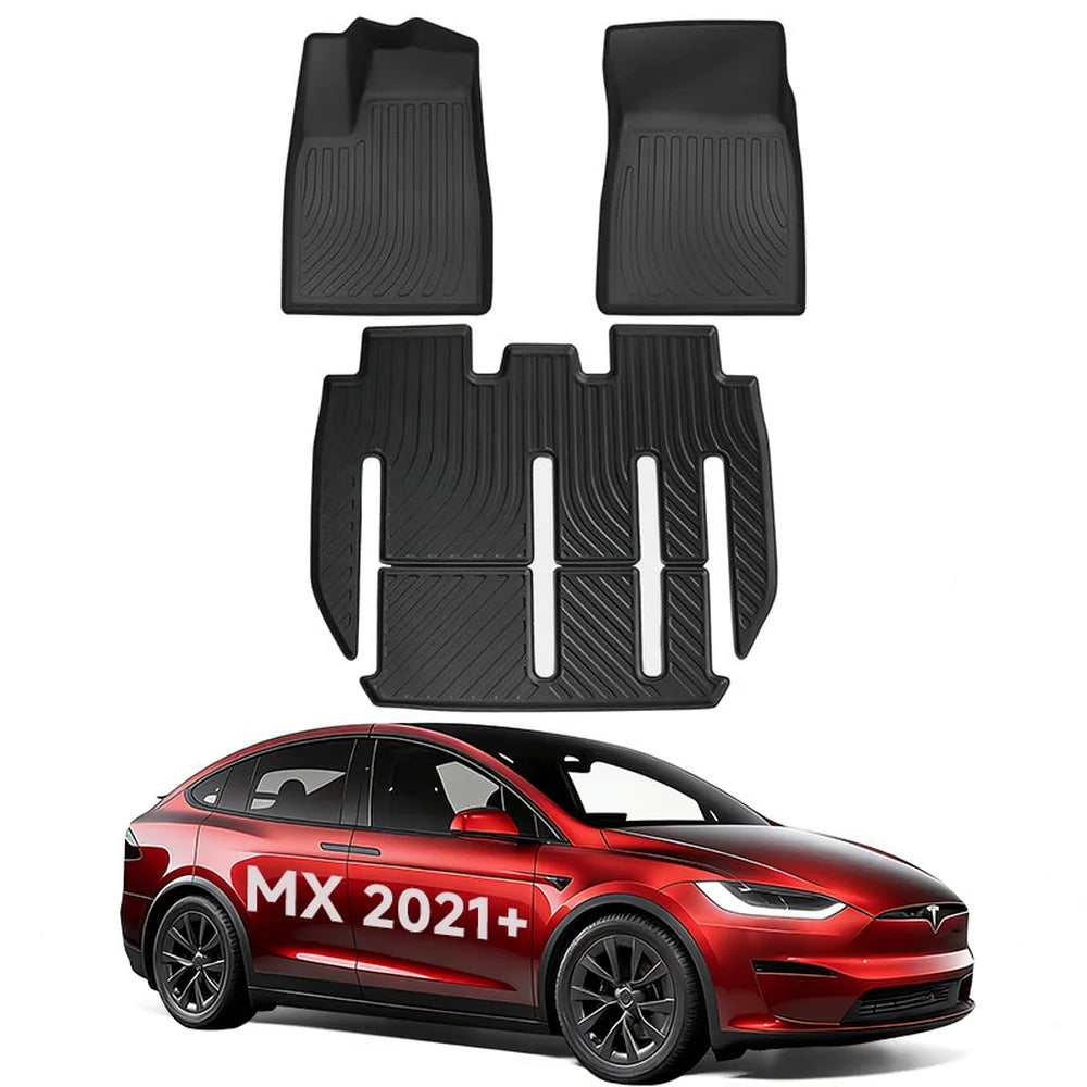 All Weather TPE Interiör Golvmattor Cargo Liners Set för Tesla 2021-2024 Model X