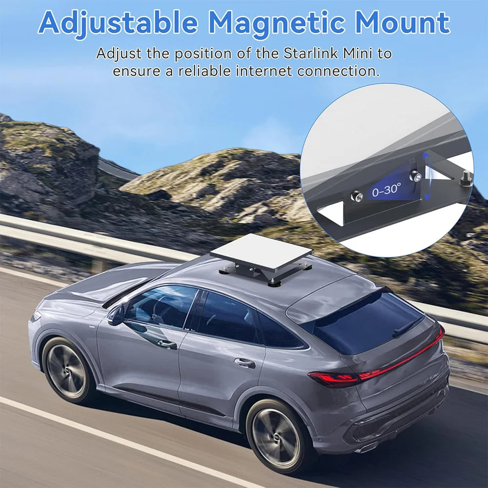 Upgrade your Starlink Mini setup with this 30° adjustable magnetic mount, built for secure and stable installation on vehicles like RVs, trucks, and boats. Featuring four heavy-duty magnets with 220lbs pull force, it keeps your Starlink Mini firmly in place—even during travel or bad weather. Made from strong carbon steel with a rust-resistant coating, this mount offers durability and long-lasting performance. Simple to install and angle-adjustable, it helps you get the best signal, wherever you go.