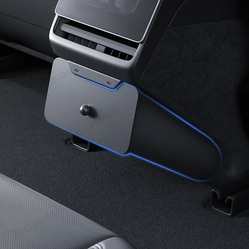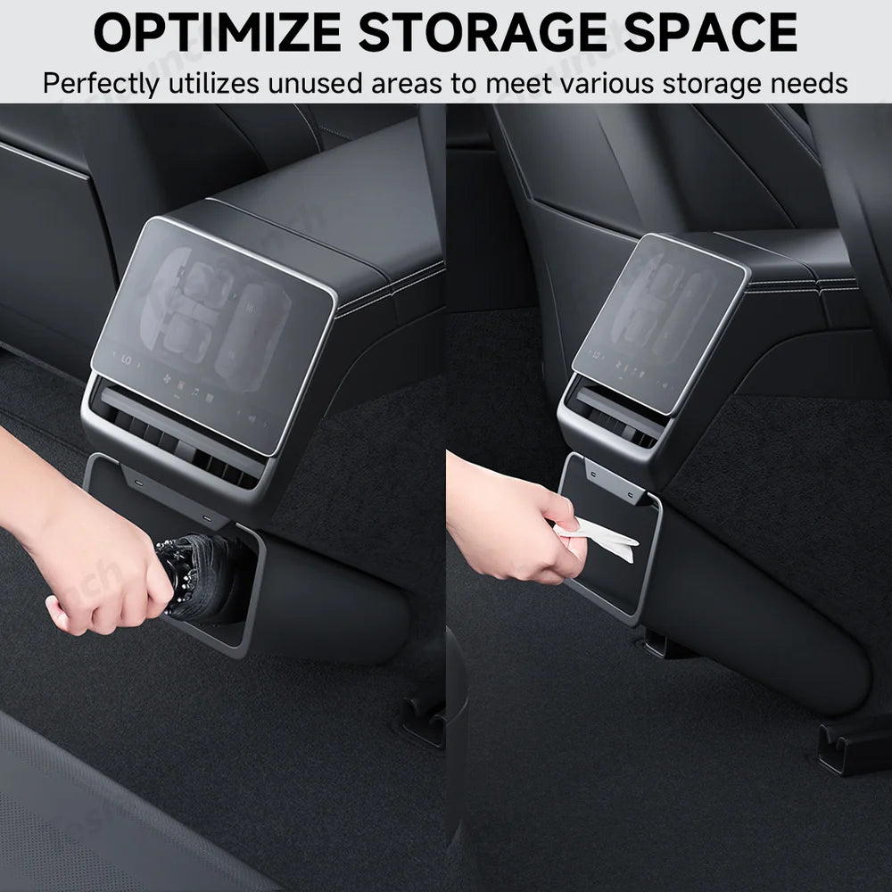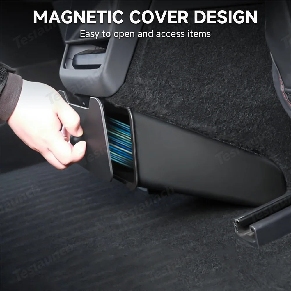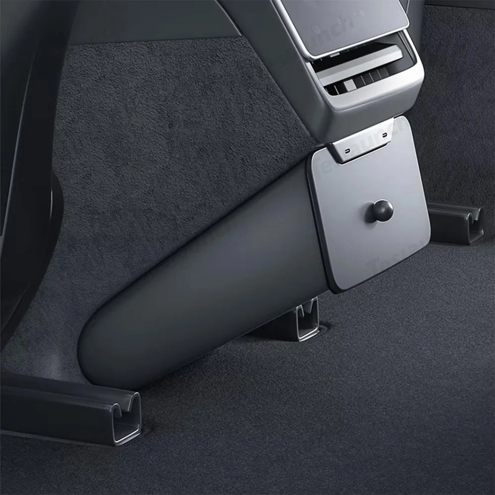 The Backseat Magnetic Trash Can & Storage Box for Tesla Model Y Juniper 2025+—a stylish and functional accessory designed specifically for your vehicle. This customized rear seat trash can features a unique design that enhances your car's interior while effortlessly containing small trash items. With a magnetic lid for easy access and a seamless fit that preserves rear passenger legroom, this organizer elevates your driving experience!