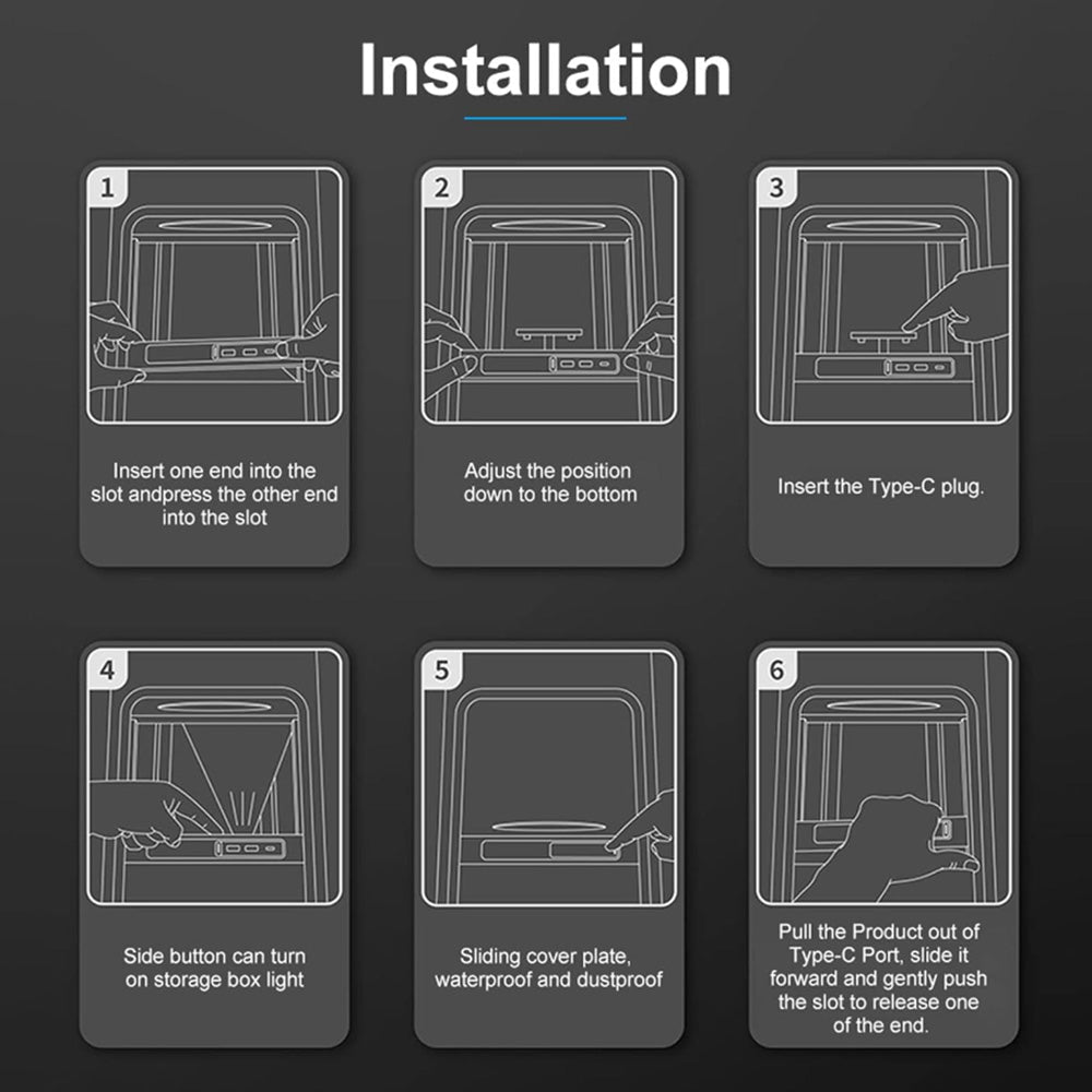 • ติดตั้งง่าย: การติดตั้งแท่นวางนั้นง่ายมาก เพียงแค่เปิดฝาเลื่อนของตัวควบคุมกลาง วางผลิตภัณฑ์บนตัวควบคุมหลักโดยเอียงเล็กน้อย จากนั้นเสียบสายเคเบิลใต้แท่นวางและพอร์ต USB ของตัวควบคุมหลัก