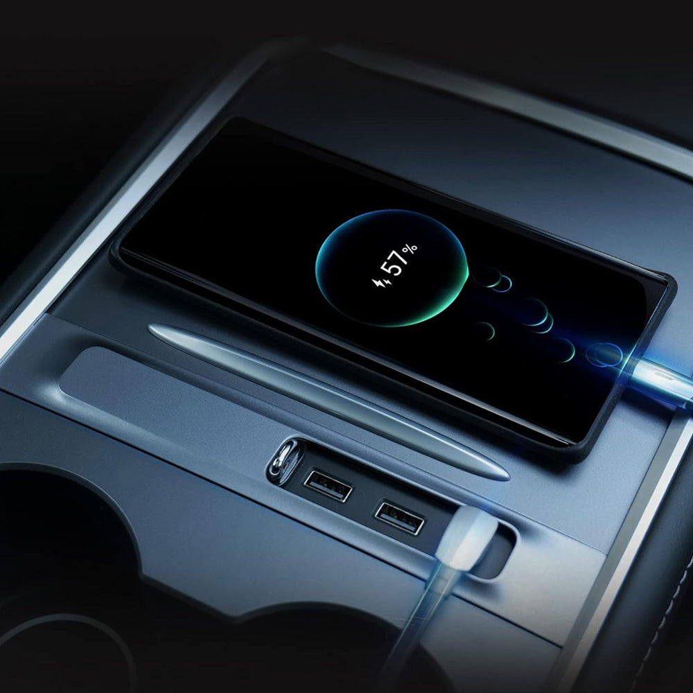 • มัลติฟังก์ชั่น: นอกจากจะชาร์จโทรศัพท์มือถือได้สองเครื่องแล้ว อินเทอร์เฟซยังรองรับการชาร์จรถยนต์แบบไร้สายด้วย Magsafe และสามารถเชื่อมต่อกับแฟลชไดรฟ์ USB สำหรับฟังเพลง แฟลชไดรฟ์ USB สำหรับบันทึกการขับขี่ พัดลม USB เกมแพด และ MacBook Air เพื่อตอบสนองความต้องการพื้นฐานของ Tesla เจ้าของ