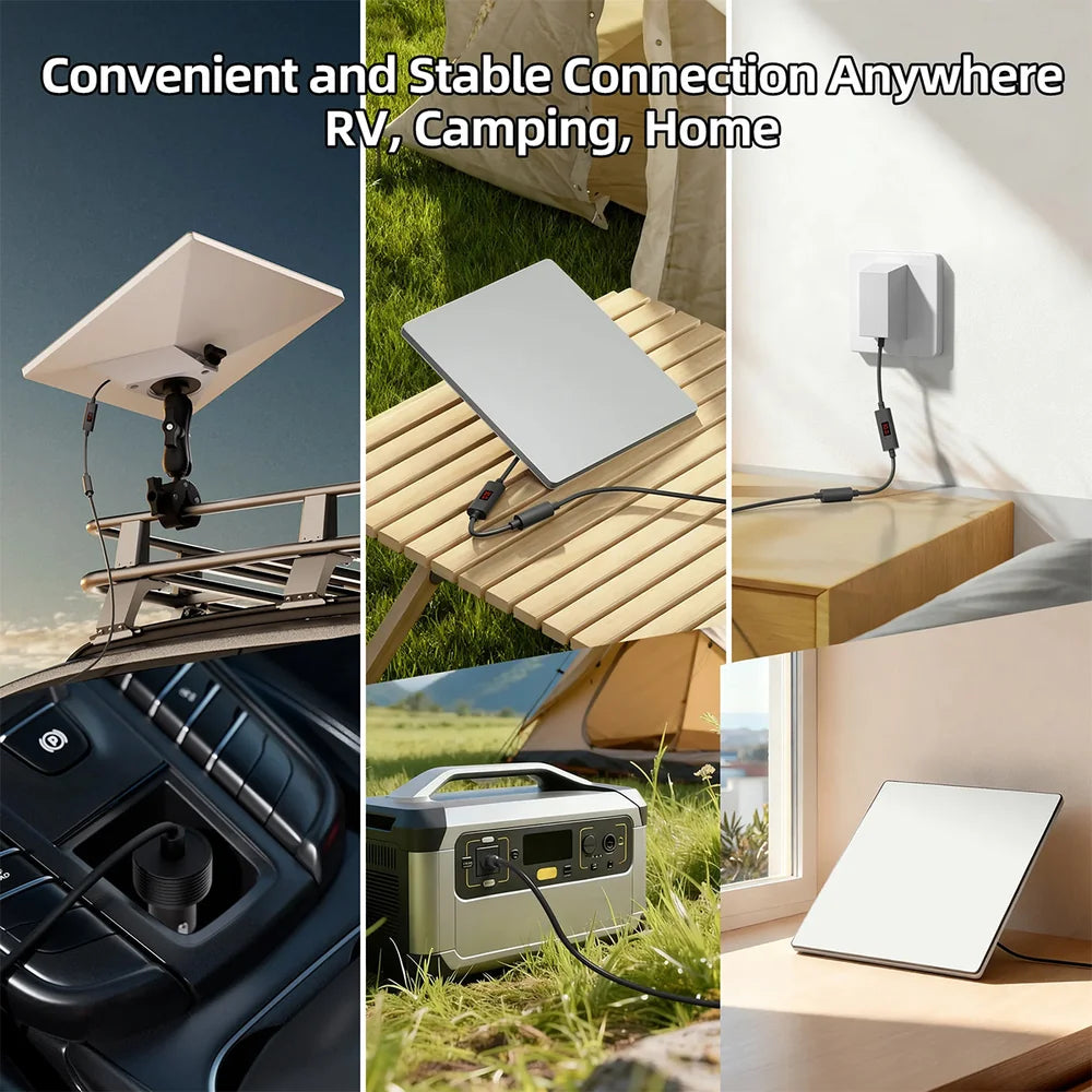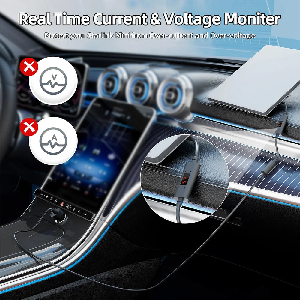 Ensure reliable power for your Starlink Mini or Gen 3 system with this DC to DC adapter. It features a digital display that shows real-time voltage and current readings, helping you quickly identify any power issues. Built for durability with IP68 waterproofing and heat resistance, this adapter is perfect for outdoor, RV, and marine use. The 18AWG tinned-copper wire ensures stable, efficient power, while the compact design allows for easy installation and storage.